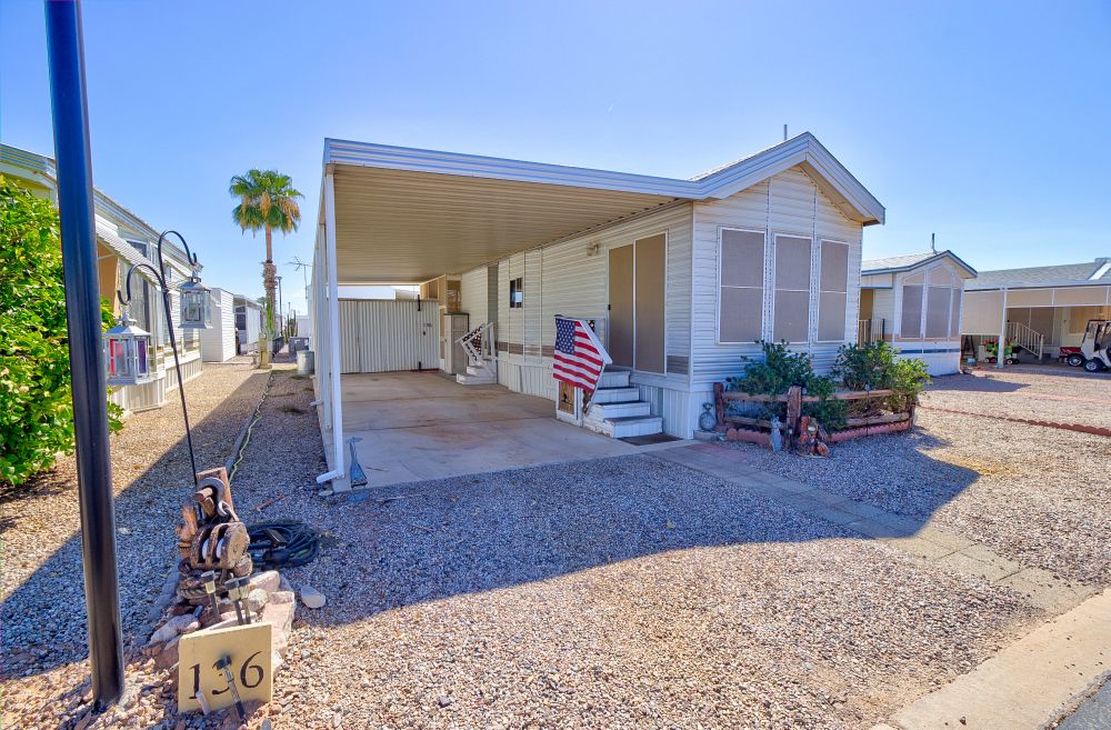 Welcome to your desert retreat in the sought-after Sunscape RV Resort Park! This charming 1-bedroom, 1-bath home features a spacious sunroom—perfect for relaxing or entertaining—and a large storage shed for all your tools, hobbies, or seasonal items.Enjoy resort-style living in this active 55+ community, featuring amenities such as a heated pool, clubhouse, pickleball courts, and community events.